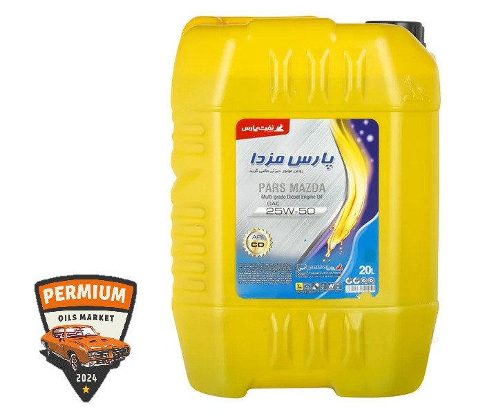 روغن موتور پارس مزدا 25W50 حجم 20 لیتر؛ مخصوص موتورهای دیزلی، سنگین و نیمه است.